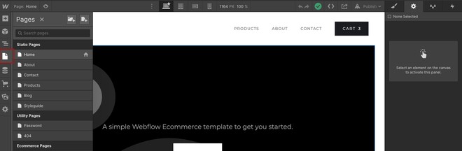 L’interface Webflow est votre poste de pilotage. C’est votre espace de création. Visuellement, on le compare souvent à Photoshop. Mais il y a pas mal d’éléments à prendre en main, nous allons donc nous focaliser sur les plus importants.