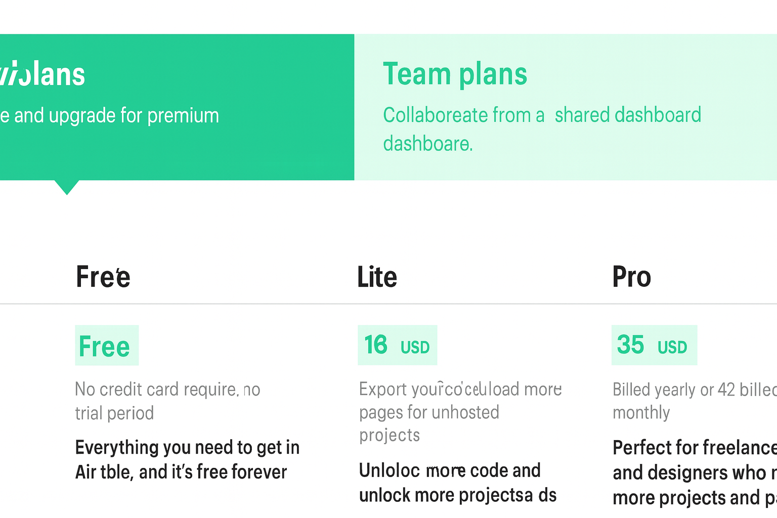 - "Account plans": You can start for free, then move to plans, the first being $16 for Lite, then $35 for Pro. This plan is really only interesting for agencies or large marketing teams who work on multiple projects, need to collaborate, and extract code. This is actually a "project" account. Most users only need a "Site Plan" to host their site.